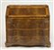 Cassettone a ribalta in legno decorato ad intarsi in legni chiari con 3 cassetti e calatoia. cm. 110x106x56.