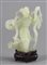 Scultura in giada finemente scolpita raffigurante Guanyin, su base in legno....