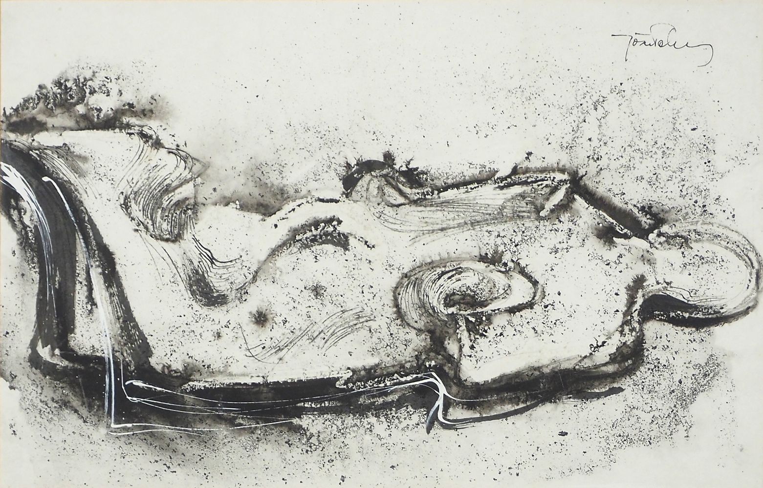 Joze Pohlen 1926-2005 "Figura distesa cm. 30x47 - tecnica mista su base litografica Firmato alto a d.