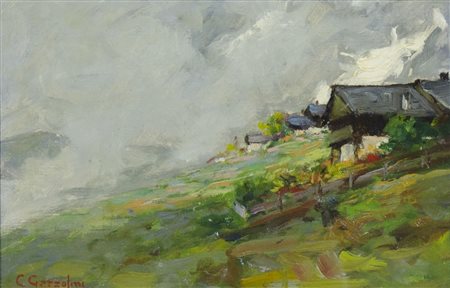 Ciro Garzolini Trieste 1883-1972 "Baite in alta montagna" cm. 15x23 - olio su...