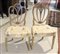 Coppia di sedie in legno laccate decorate a motivi floreali.