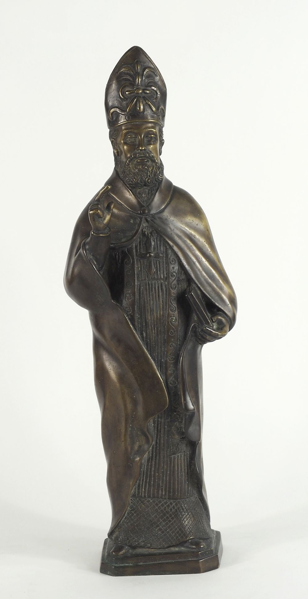 Scultura in bronzo a patina marrone raffigurante Santo. H. cm. 58.