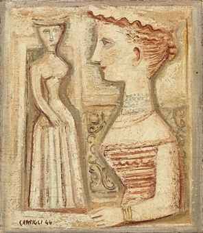 Massimo Campigli (1895-1971) Senza titolo firmato e datato Campigli 44 (in basso a sinistra) olio su tela cm 31,8x28 Eseguito nel 1944 Autentica di Nicola Campigli su fotografia, Saint Tropez, n. 7906939, in data 2 aprile 2001 Provenance Galleria Sianesi, Milano Galleria Lorenzelli, Milano Galleria Falsetti, Prato Galleria Il Traghetto, Venezia