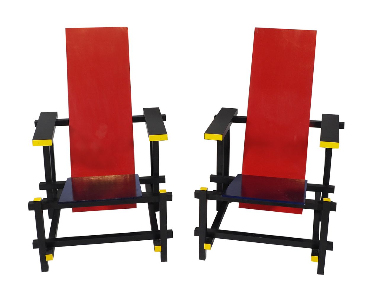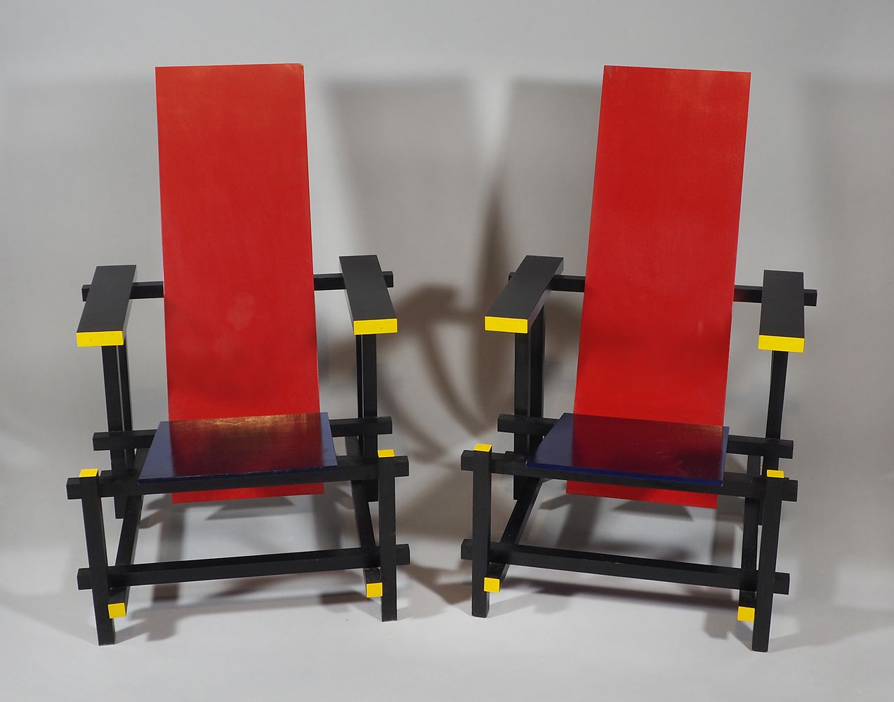Cassina: coppia di pootrone in legno laccato modello Red & Blue, disegno di G. T. Rietveld.
