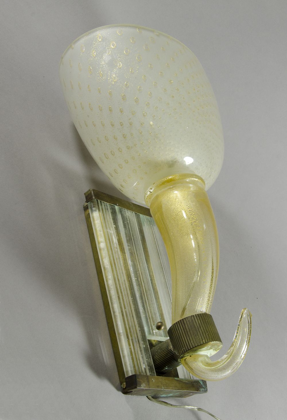 Grande applique in vetro con inclusioni oro. H. cm. 39.