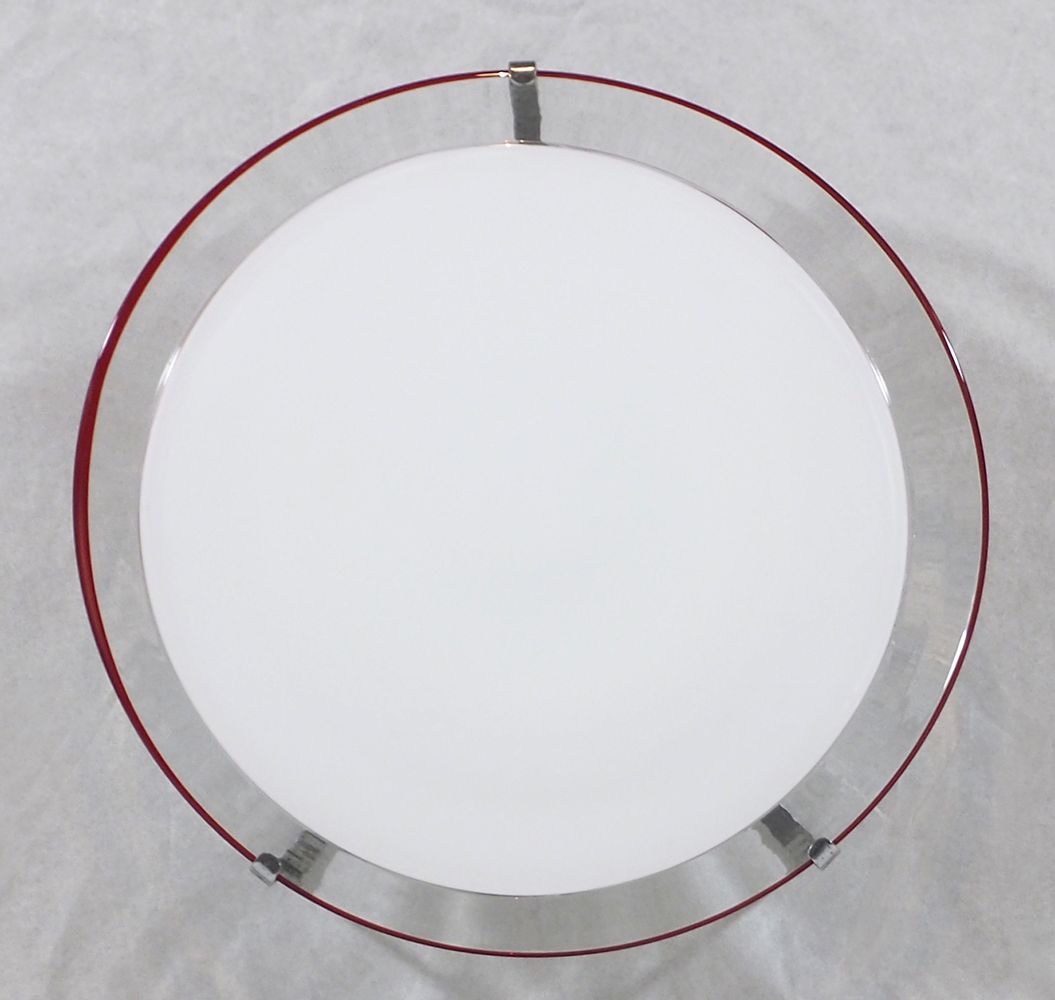 Lotto di 3 appliques in vetro lattimi con bordo rosso, di forma circolare....