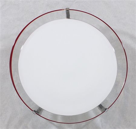 Lotto di 3 appliques in vetro lattimi con bordo rosso, di forma circolare. Diam. cm. 30.