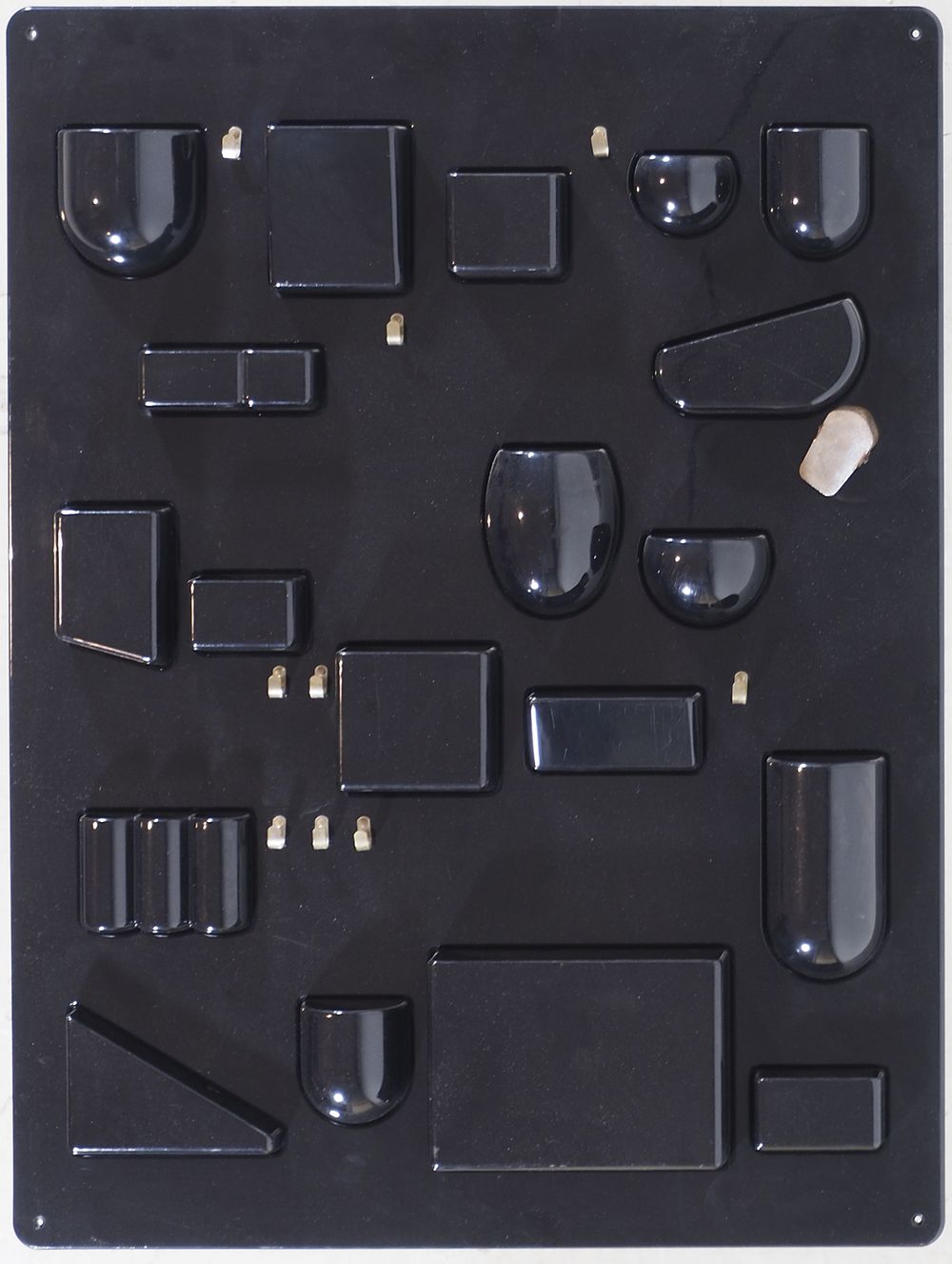 Vitra: portaoggetti da parete in ABS nero modello Utensilo. Disegno di D. Becker 1969. cm. 80x55.