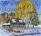 Pittore russo contemporaneo "Casa sotto la neve" cm. 70x90 - olio su tela Firmato b. a d. e datato '93. Dati dell'opera al retro.