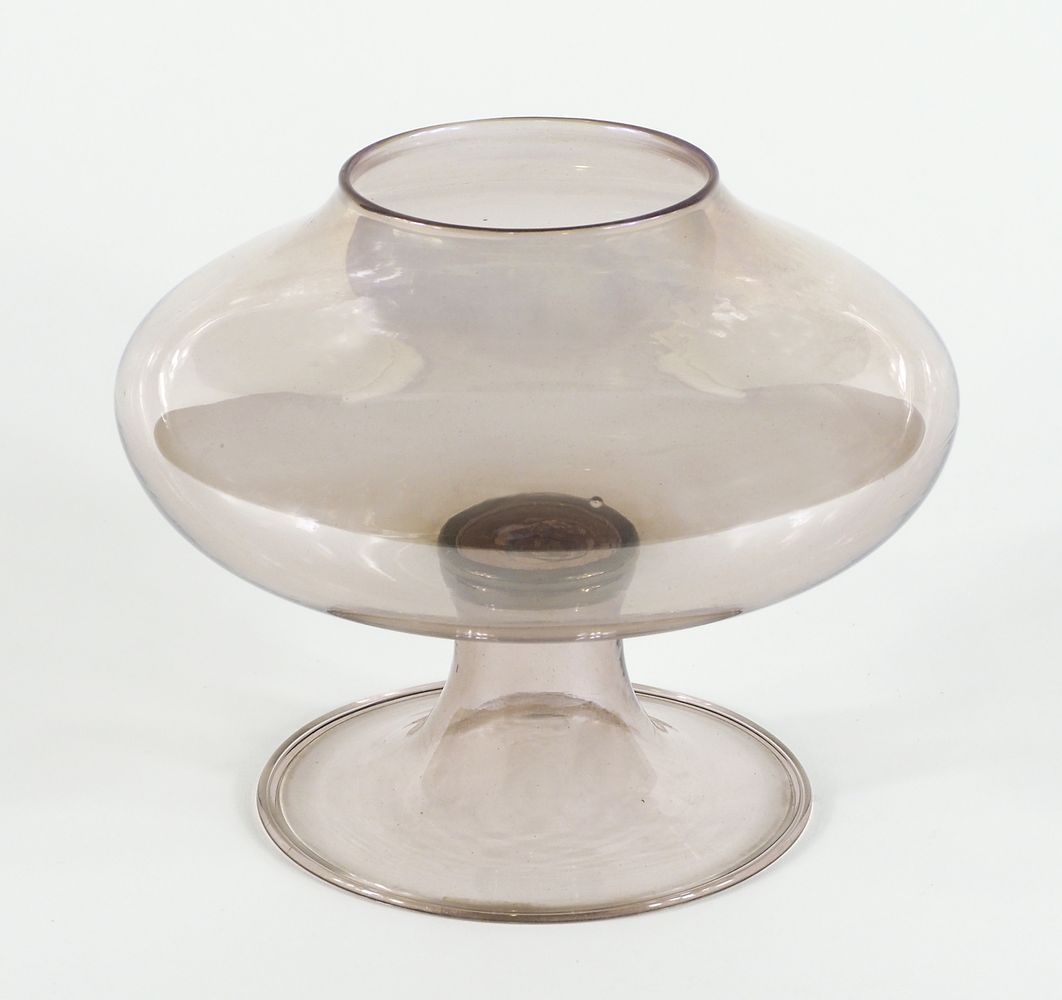 coppa in vetro trasparente ambrato, disegno di V. Zecchin. H. cm. 17, diam. cm. 21. Esposiz.: Mostra V. Zecchin, Palazzo Correr, Venezia 2002-2003; Mostra V. Zecchin, Isola di San Giorgio, Venezia 2017.