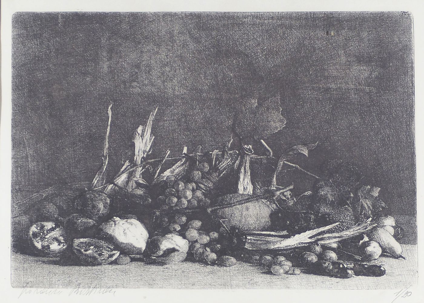 Giovanni Barbisan 1914-1988 "Natura morta" cm. 45x60 - incisione Firmato b. a s. Esemplare 1/20.