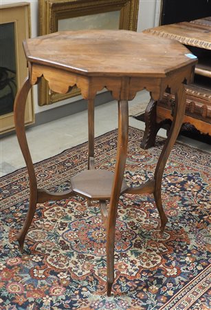 Tavolino da centro con ripiano ottagonale, su gambe mosse.