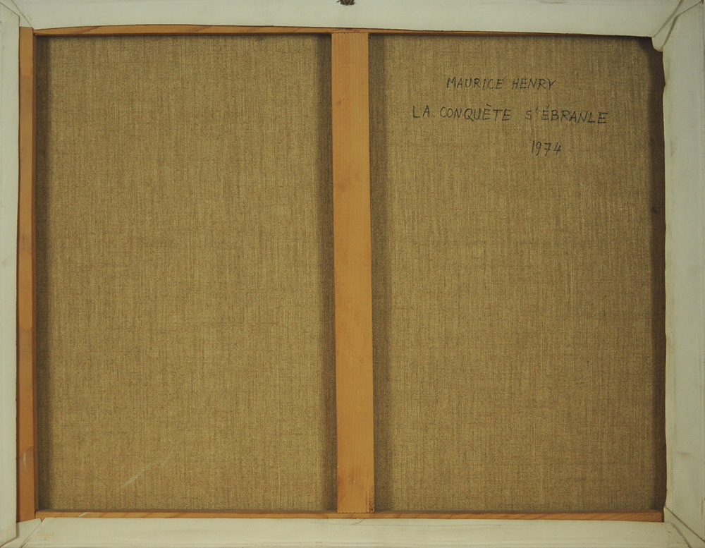 MAURICE HENRY, La conquete s'ebranle, Olio su tela Anno 1974 Dim. 50x65 Al verso data, titolo e firma Datato e firmato in basso a dx