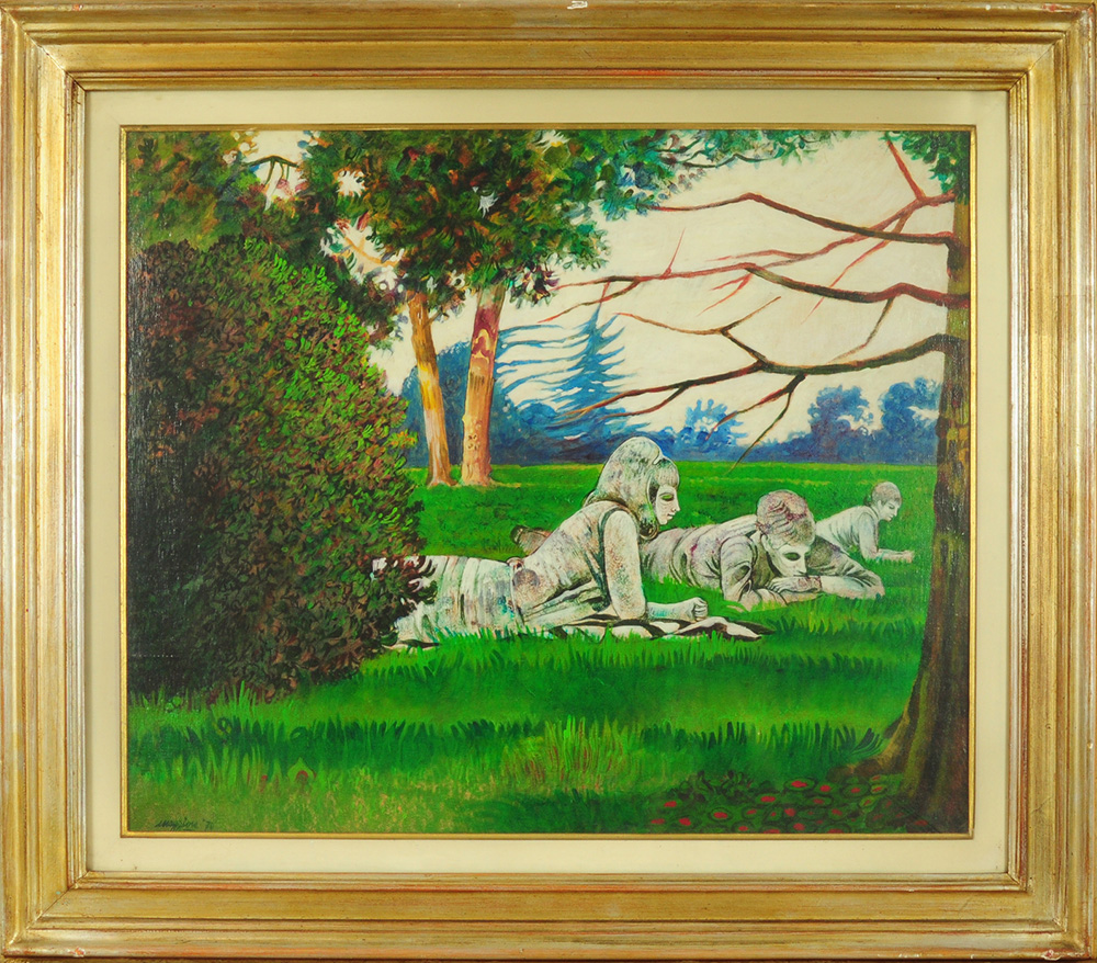 FILIPPO MAGGIORE, Gente in campagna, Olio su tela Anno 1970 Dim. 50x60 Al verso titolo, data e firma datato e firmato in basso a sx
