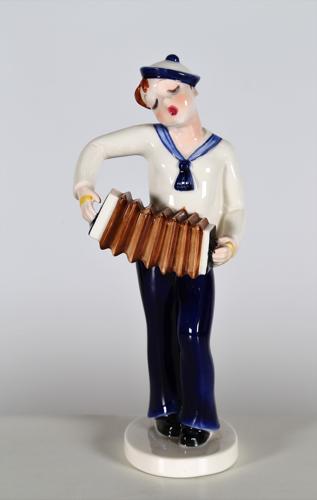 CLAIRE WEISS Ragazzo con fisarmonica . . Cm 24,00. Porcellana, per Rosenthal, marchio alla base