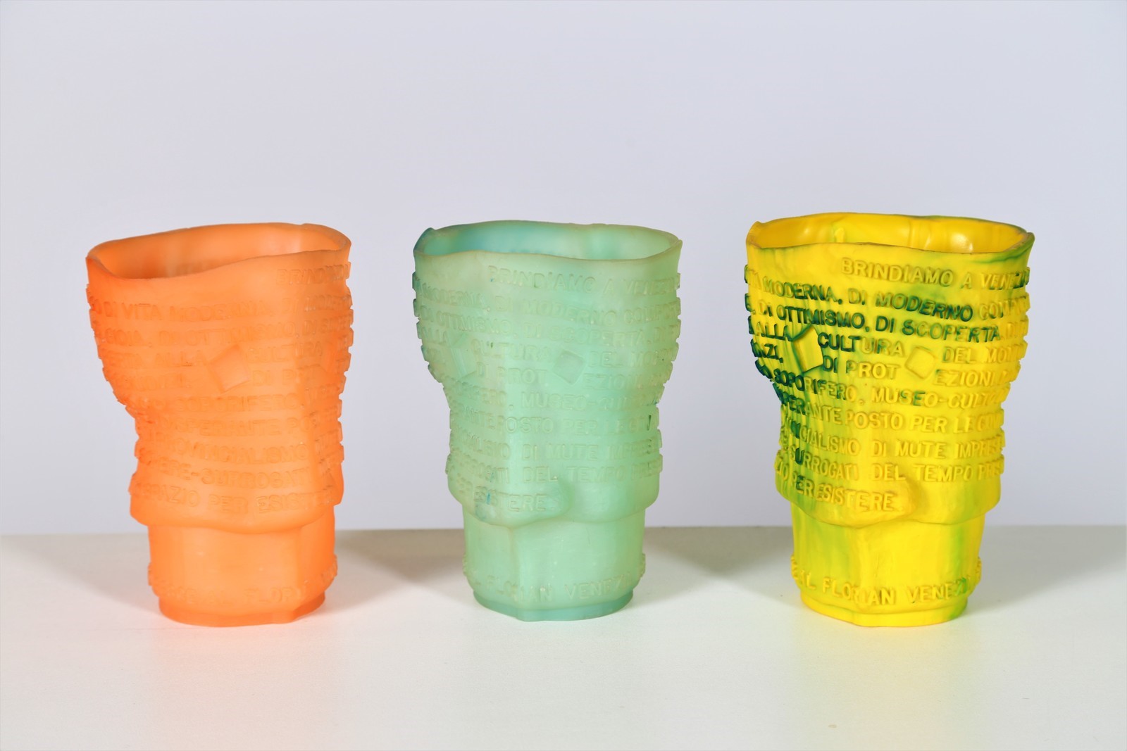 PESCE GAETANO (n. 1939) Tre vasi Goto, realizzati per 'Caffè Florian' durante la mostra temporanea, Biennale di Venezia del 1995. commissionata da Lavazza, . -. Cm 11,00 x 15,00.