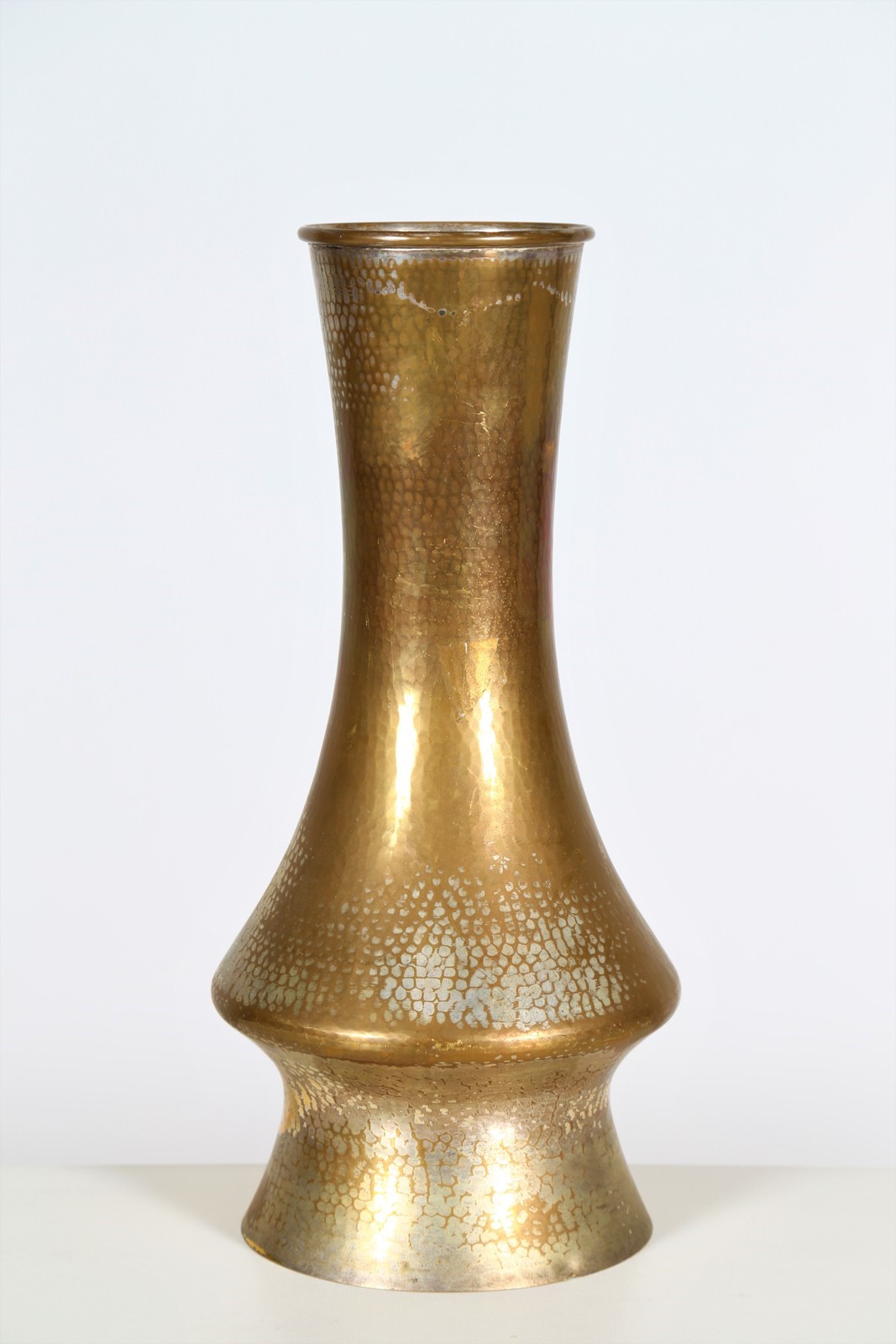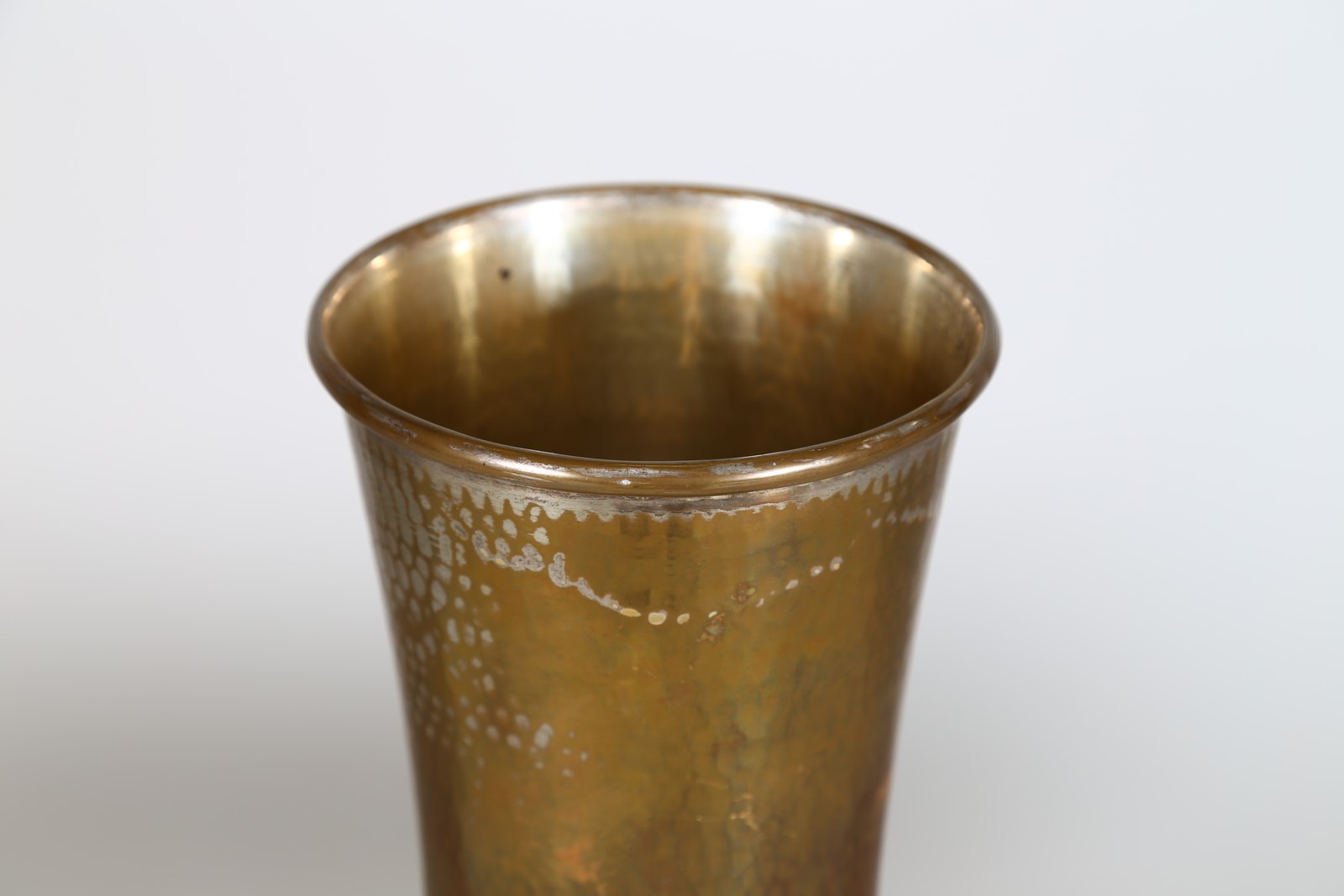 ZANETTO Vaso anni 60. -. Cm 20,00 x 48,00 x 20,00. Ottone battuto e argentato