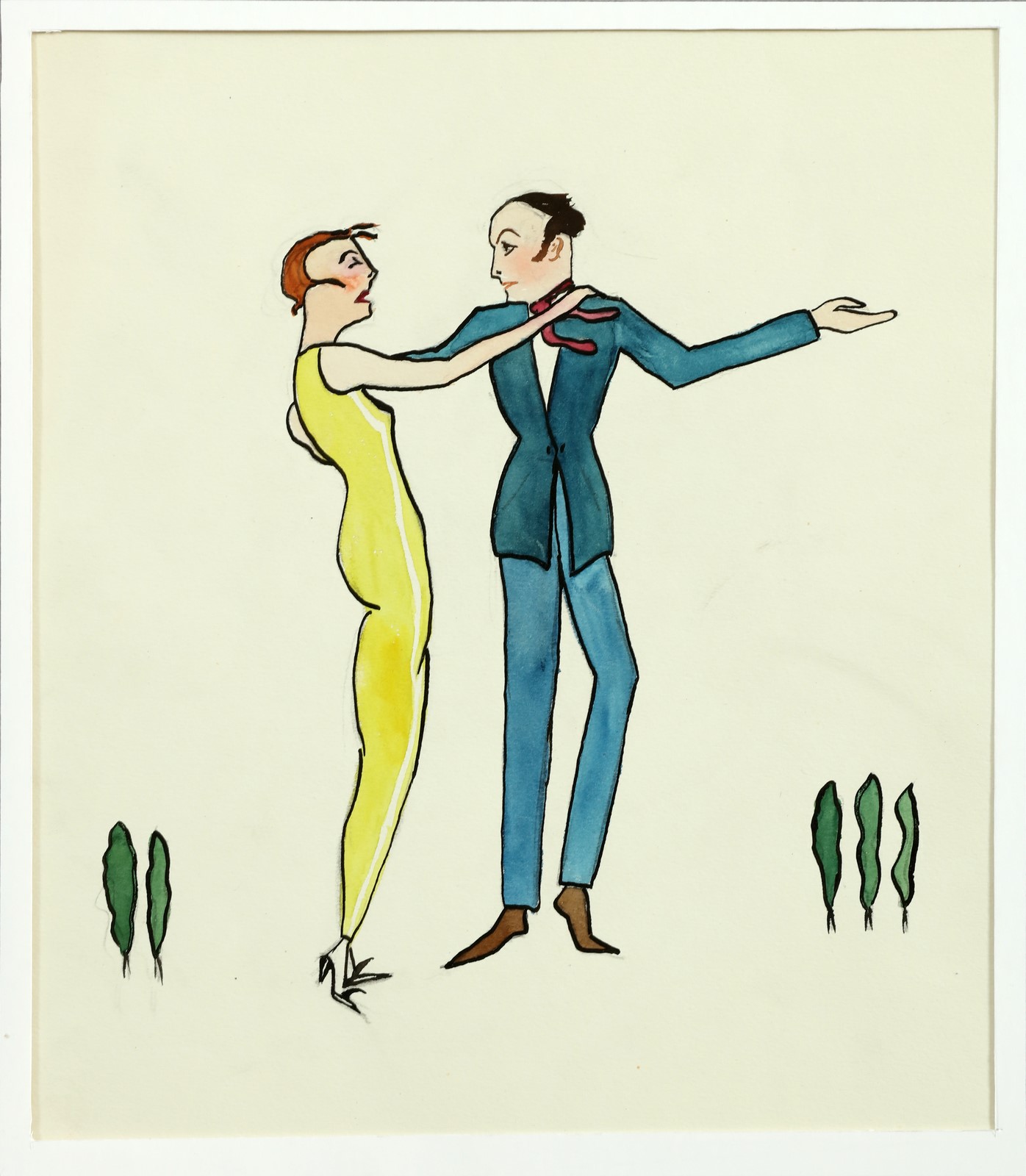 BURGNER DODO DORTE CLARA (1907 - 1998) Giovane coppia che danza. Tecnica mista su carta. Cm 22,50 x 26,00.