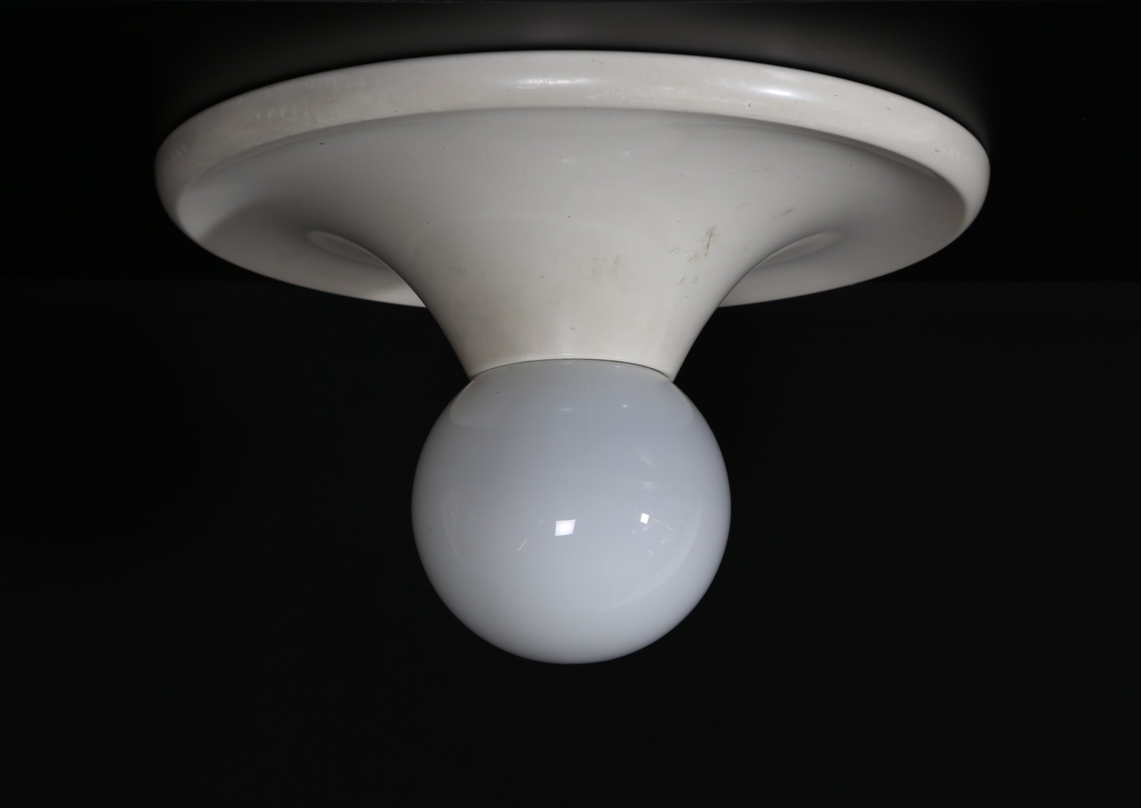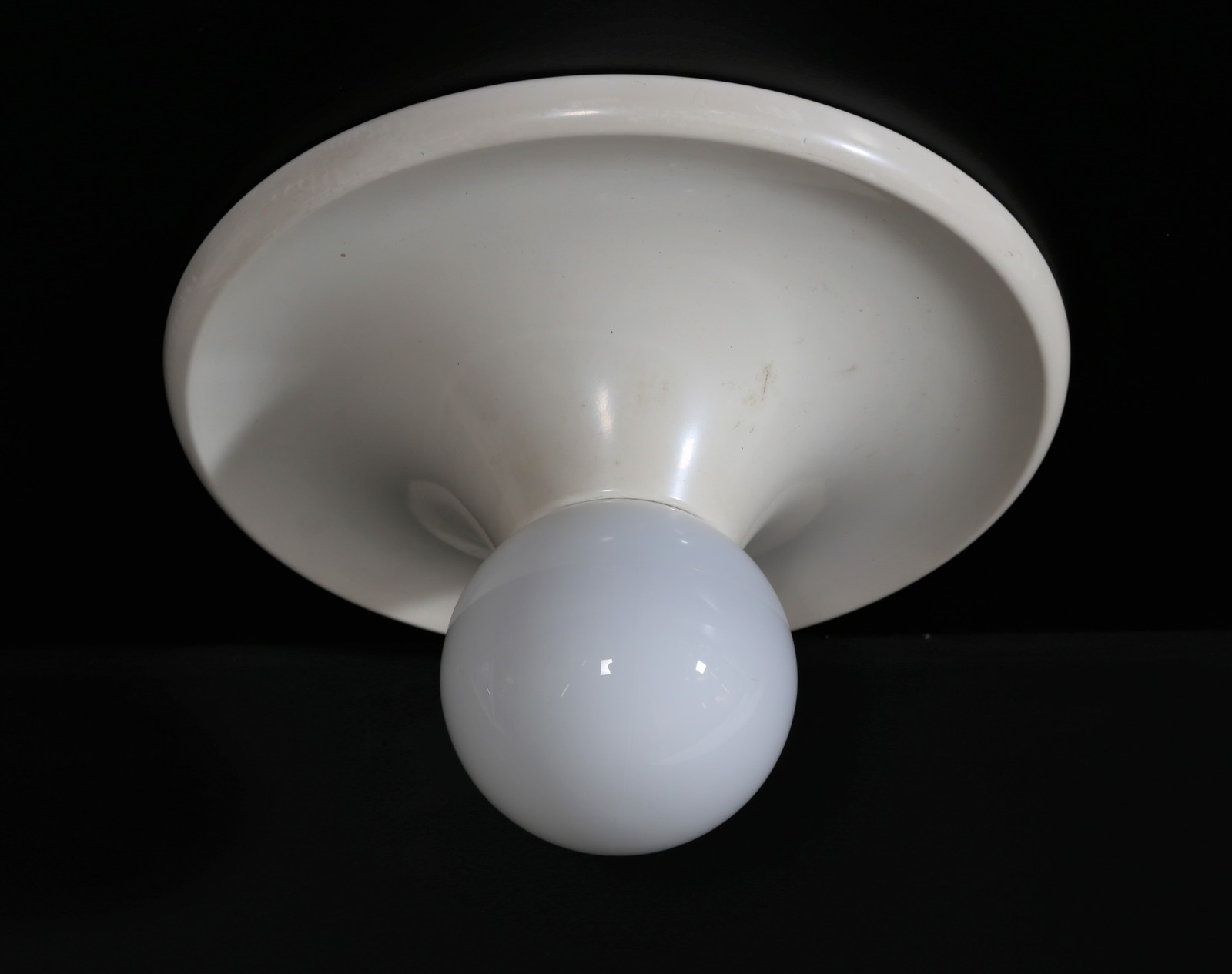 ACHILLE & PIERGIACOMO CASTIGLIONI (1918 - 2002) Lampada da parete-soffitto, in metallo laccato e vetro opalino, mod. Light Ball per Flos anni 60 . -. Cm 42,00 x 26,00 x 42,00. Metallo laccato e vetro