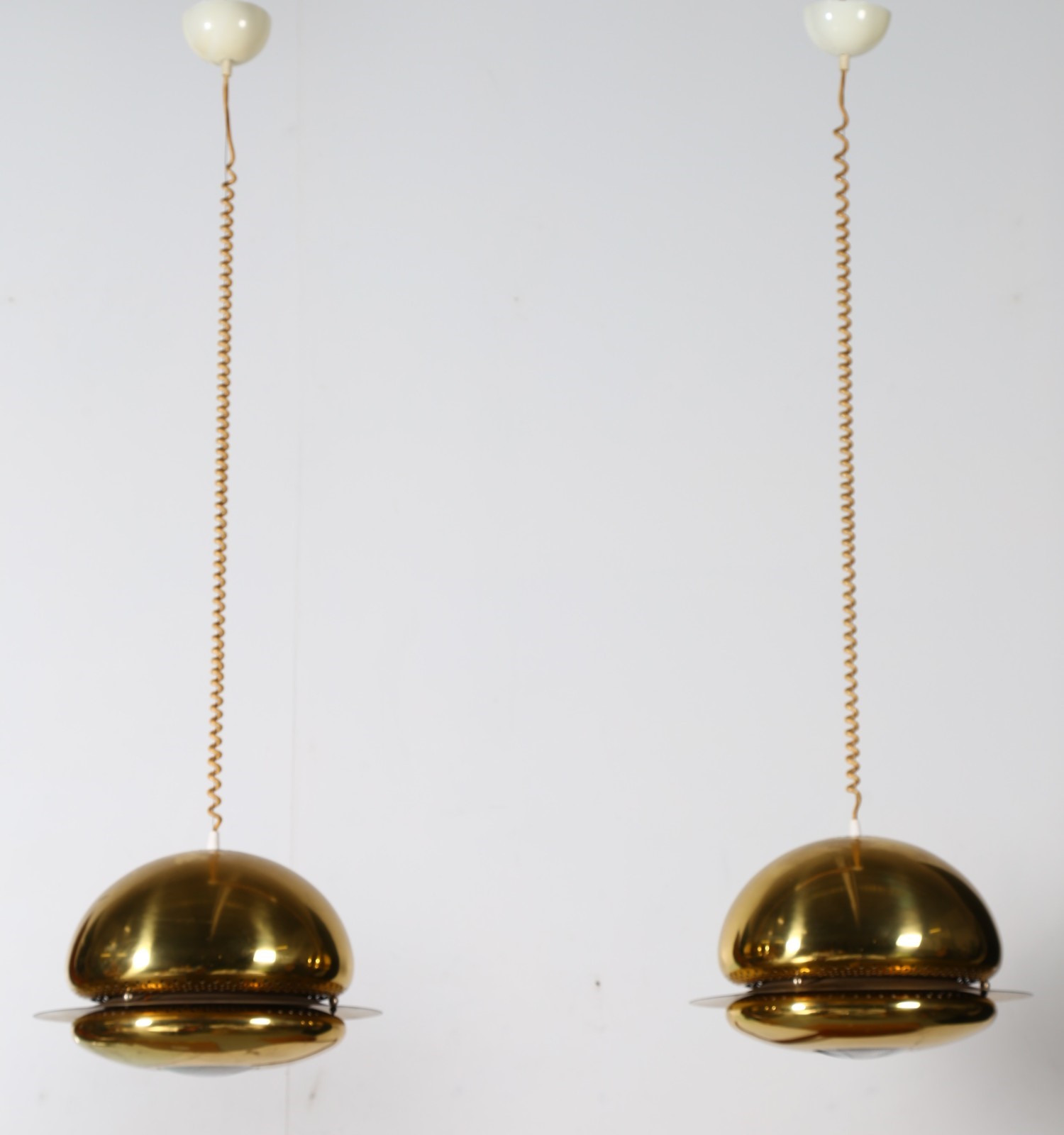 SCARPA TOBIA (n. 1935) Coppia di lampadeda soffitto mod. Nictea per Flos anni 60. -. Cm 46,00 x 31,00 x 46,00. Ottone e vetro ( un vetro rotto )