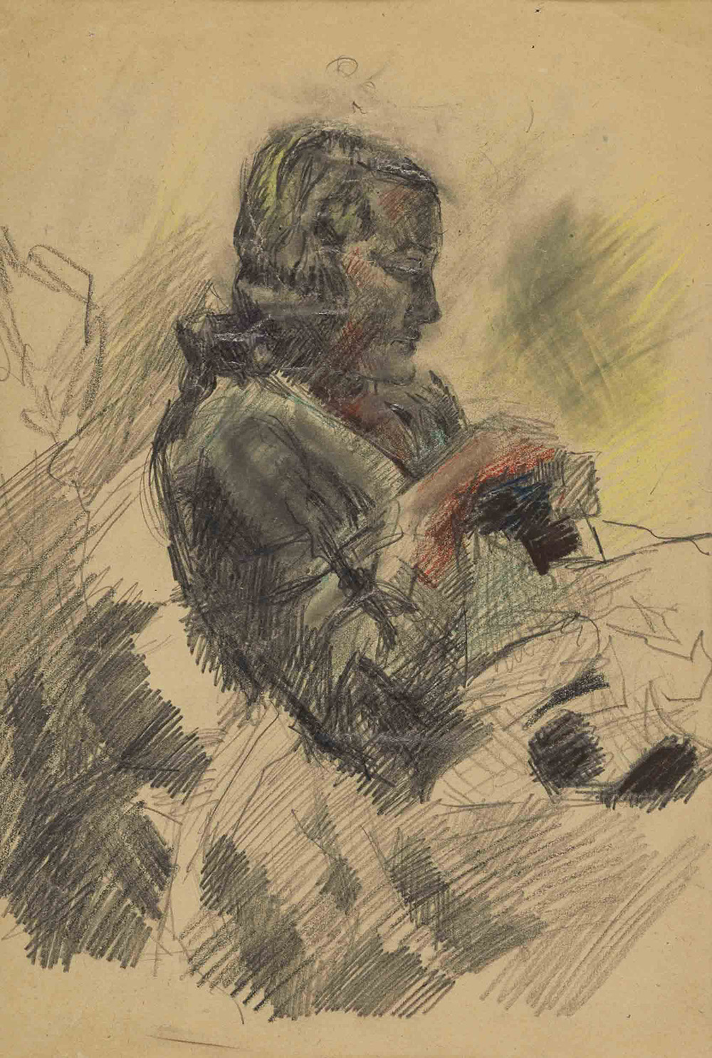 MARIO SIRONI (1885 - 1961) Donna che cuce 1938 circa Matita, matita grassa e...