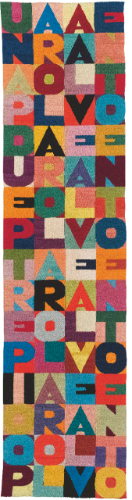 ALIGHIERO BOETTI 1940 - 1994 UNA PAROLA AL VENTO, DUE PAROLE AL VENTO TRE PAROLE AL VENTO 100 PAROLE AL VENTO signed, tapestry. Executed in 1989. This work is registered in the Archivio Alighiero Boetti, Rome, under n. 6895 and is accompanied by a photocertificate firmato sul risvolto arazzo cm 90x22 Eseguito nel 1989 Opera registrata presso l'Archivio Alighiero Boetti, Roma, con il n. 6895 L'opera è accompagnata da certificato su fotografia rilasciato dall'Archivio Alighiero Boetti, Roma PROVENANCE Collezione Michelagnoli, Venezia Ivi acquisito dall'attuale proprietario