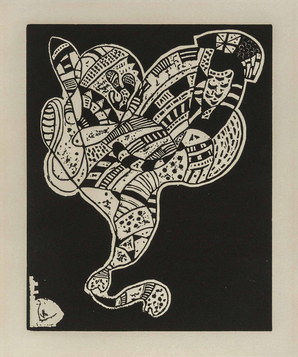 Nel 1942 Magnelli, Arp , Delaunay, Le Corbusier e Kandinsy pubblicano il portfolio '10 Origin' in Svizzera a cura di Max Bill. Kandinsky scrisse la prefazione e contribuì con questa xilografia che fu poi ristampata nel 1974 dall'orignale 'woodblock' e pubblicata in una monografia francese.