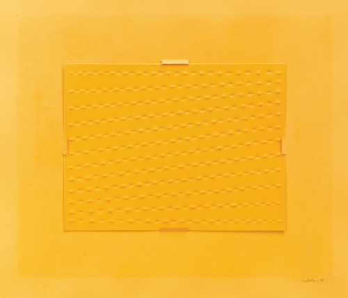 ENRICO CASTELLANI N. 1930 SENZA TITOLO signed and dated 71, acrylic on shaped paper firmato e datato 71 acrilico su carta a rilievo cm 50x70 Opera registrata presso l'Archivio Enrico Castellani, Milano, con il n. 71-051 L'opera è accompagnata da certificato su fotografia rilasciato dall'Archivio Enrico Castellani, Milano PROVENANCE Opera acquisita dall'attuale proprietario direttamente dall'artista