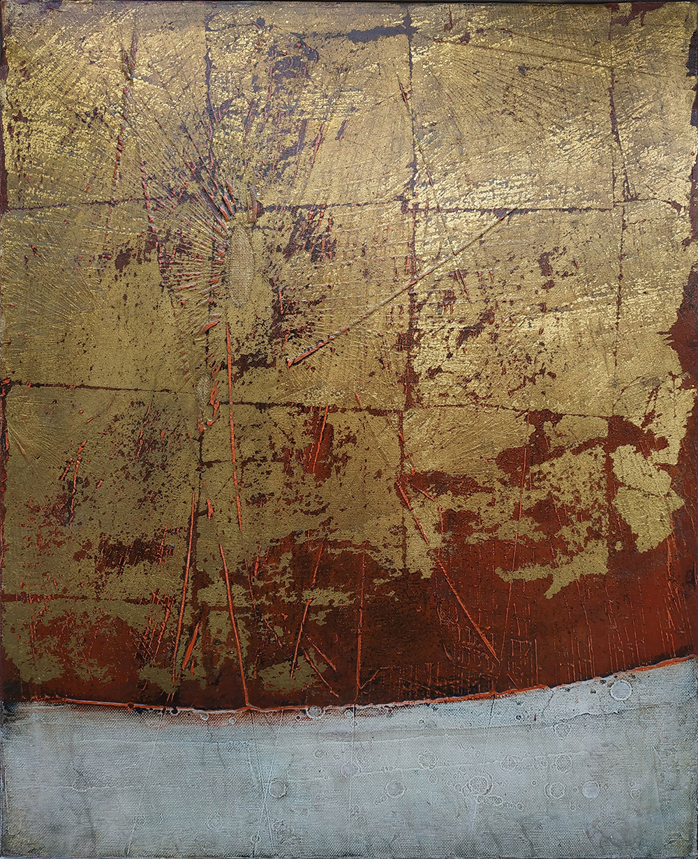 Remo Bianco, Senza titolo, fine anni '50 - inizio anni '60 Olio e foglia d'oro su tela, 49,5x39,8 cm Dichiarazione d'autenticità a cura della FONDAZIONE REMO BIANCO (Milano) a firma del presidente Riccardo Gianni, rilascita in data 8 Novembre 2017 N. Archivio: FRB2034