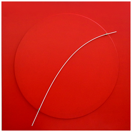 BRUNO BANI Cernusco Sul Naviglio 1964 Moon red (Satellite R) 2017 Acrilico, rame e plastica su tela 100 x 100. Sul verso numero archivio, data, firma e titolo. base: 200