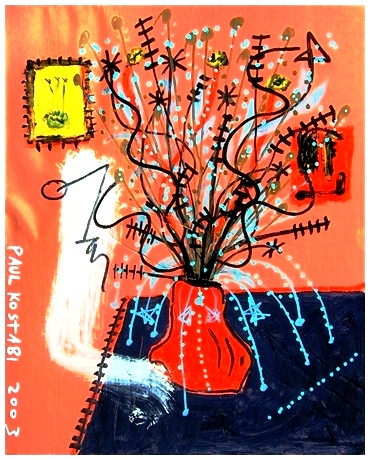 PAUL KOSTABI Whittier (USA) 1962 Delicate balance 2003 Olio su cartone telato 50,5 x 40,5. Firma e data a s. (in verticale); sul verso firme, titolo e data. Autentica dell’autore su foto. Pubbl.: “Paul Kostabi” cat. mostra a cura di Silvio Guarasci, Saletta Viviani, Pisa, 1 – 31 Dicembre 2007, p.62. base: 450