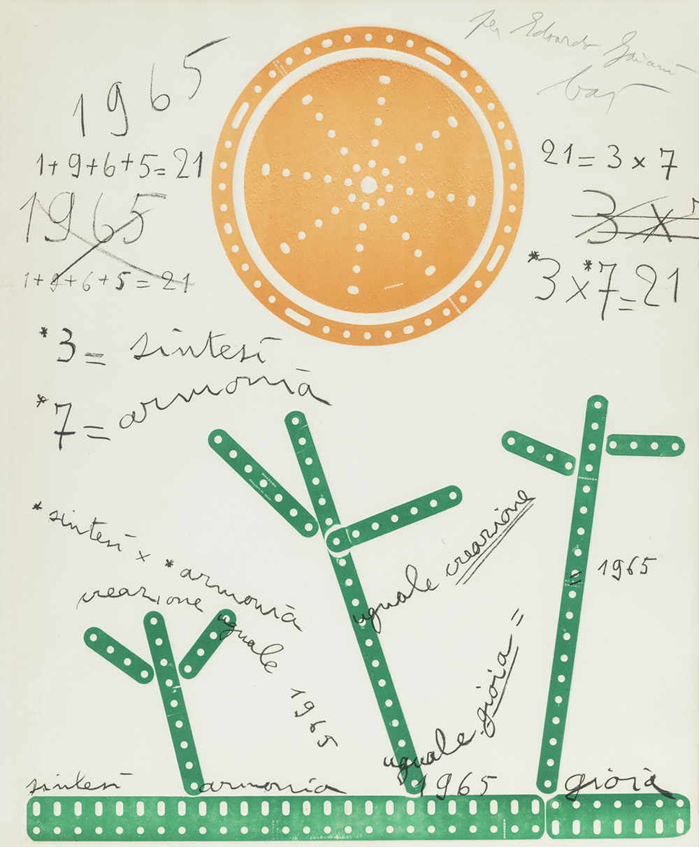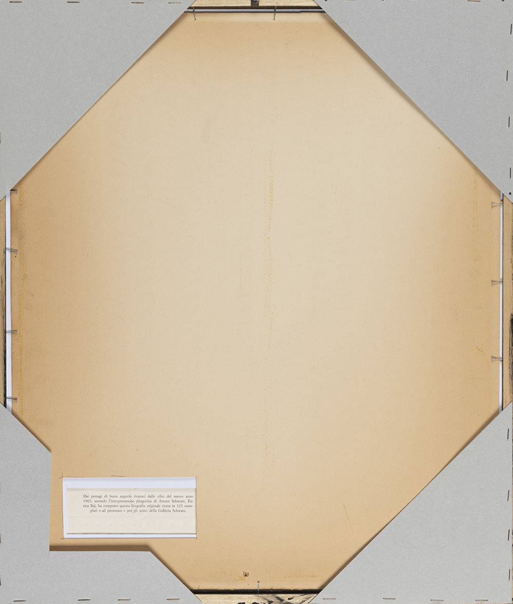 Enrico Baj 1924 - 2003 Senza titolo - 1965 tecnica Multiplo, litografia su carta Dimensioni cm. 50,5 x 52 Firma Firmato in alto a destra Note Tiratura 123 esemplari realizzati per la Galleria Schwarz, Milano Provenienza Collezione Privata