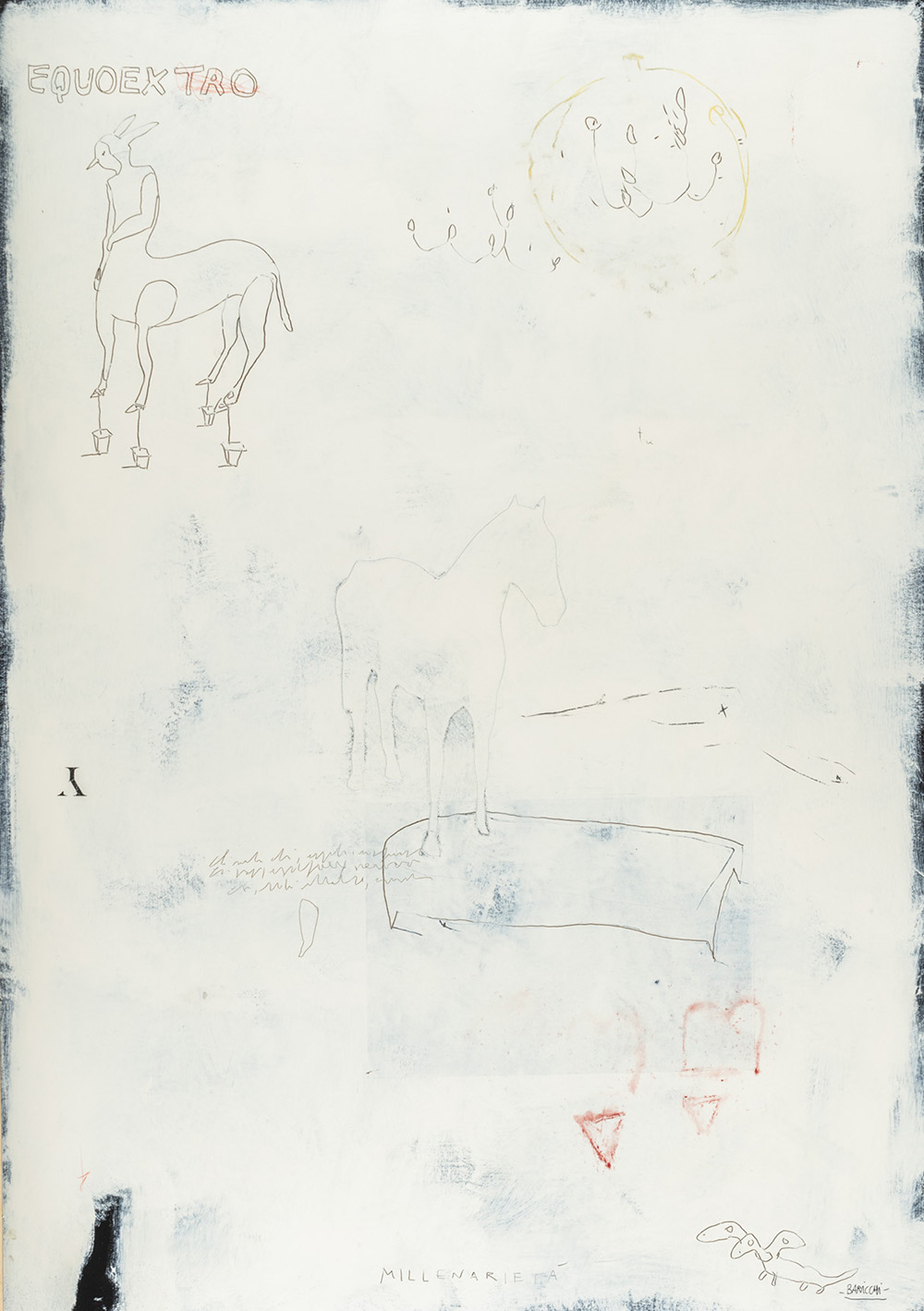 Mirko Baricchi 1970 Millenarietà tecnica Tecnica mista e collage su cartoncino Dimensioni cm. 100 x 70 Firma Firmato in basso a destra Provenienza Collezione Privata