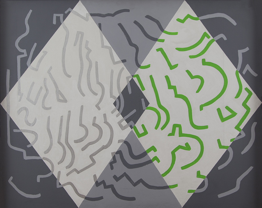 Carla Accardi Trapani 1924 – Roma 2014 "Rombi sovrapposti" vinilico su tela anno 2005 cm 80x100 Autentica su fotografia rilasciata dall'Artista Opera pubblicata sul Catalogo Generale Carla Accardi a cura di Germano Celant