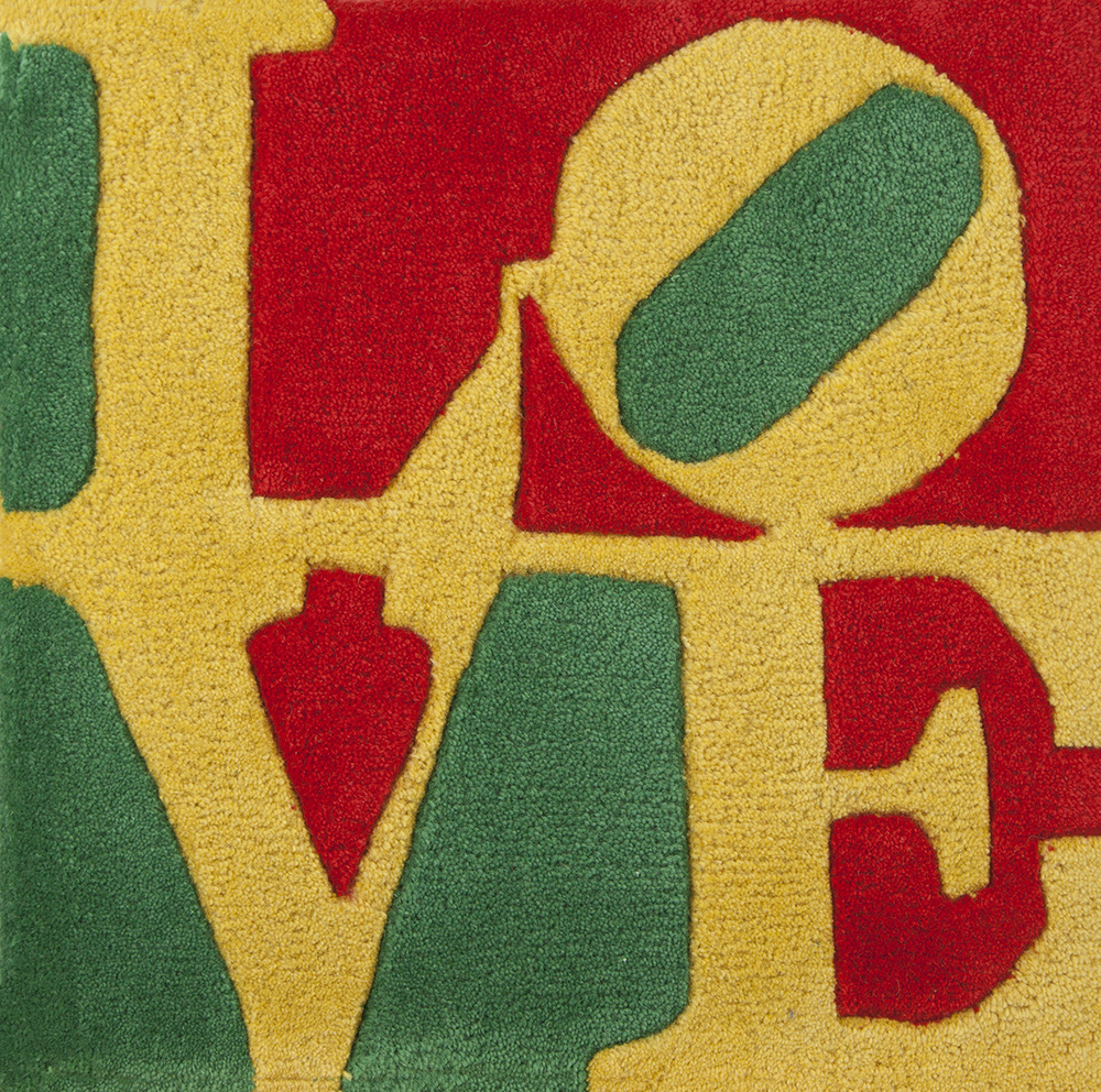 Robert Indiana New Castle 1928 – Vinalhaven 2018 "SUMMER-LOVE" 2006 multiplo in lana cotta lavorata a mano esemplare 334 cm 40x40 firma e tiratura al retro provenienza: Exclusive edition for galerie-f 2006 - etichetta al retro