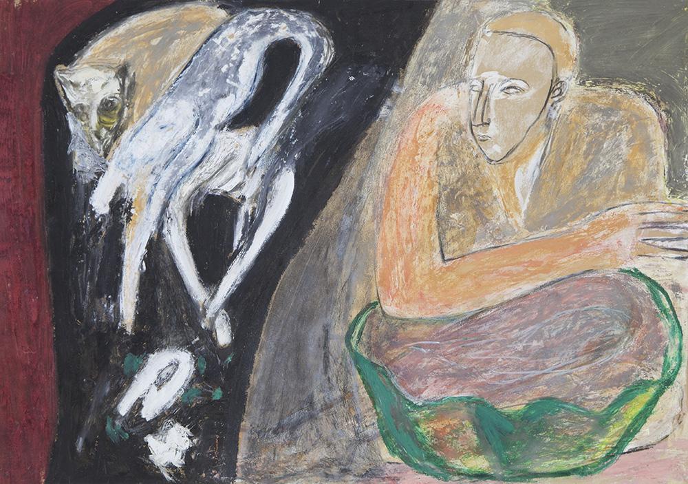 Mimmo Paladino Paduli 1948 "Senza titolo" olio e pastello su carta anno 1981 cm 48,6x69,2 al retro: firmato, datato + etichetta Galleria Alessandro Bagnai + etichetta Waddington Galleries Ltd-London