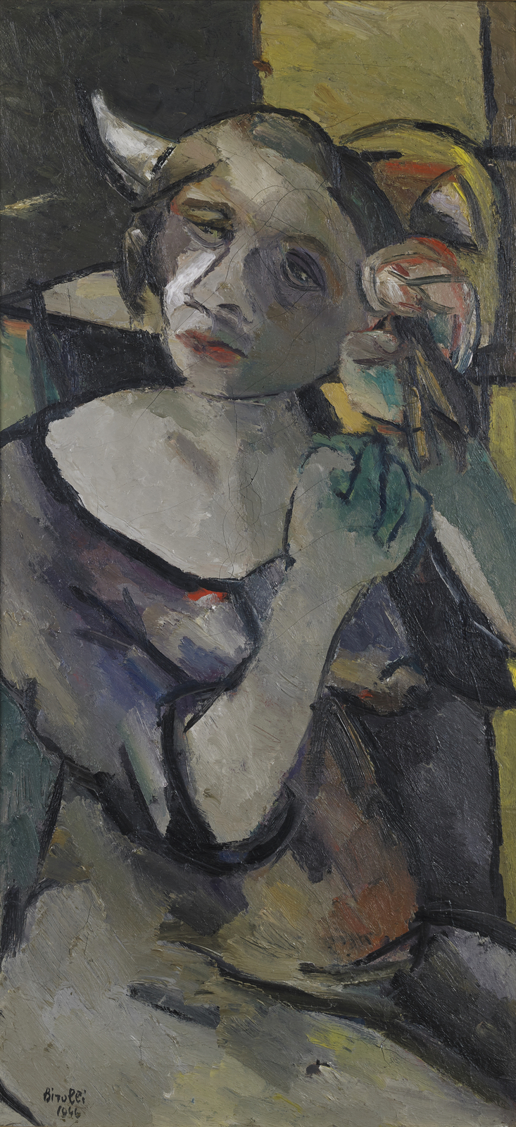 BIROLLI RENATO (1905 - 1959) Donna e la luna. . 1946. Olio su tela . Cm 68,00...