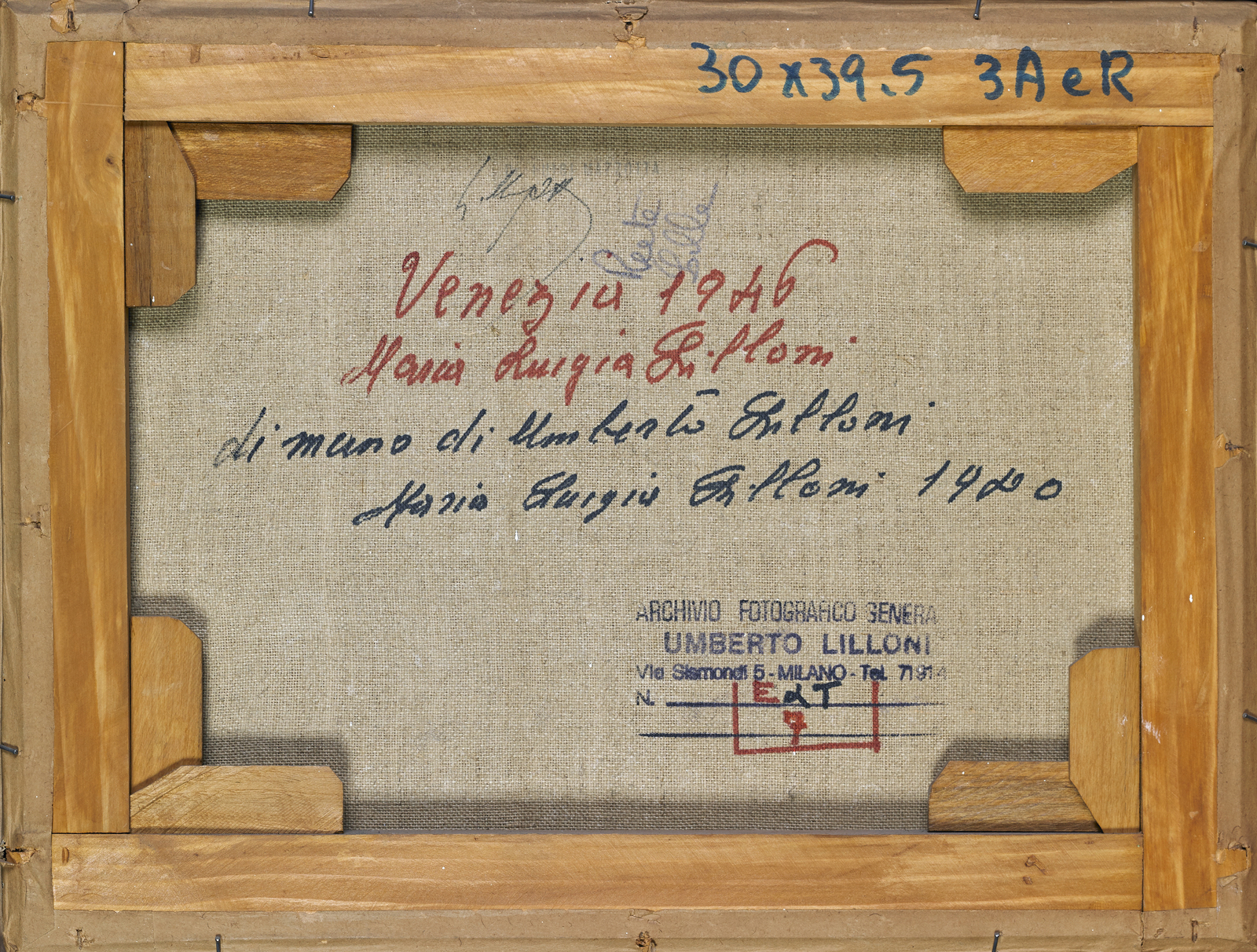 LILLONI UMBERTO (1898 - 1980) Venezia. 1946. Olio su tela . Cm 40,00 x 30,00. Firma in basso a sinistra. Al retro titolo, anno e timbro Archivio Fotografico Umberto Lilloni. Pubblicazioni: Umberto Lilloni, Catalogo ragionato dei dipinti e dei disegni, Tomo II, pag. 478, n.535. Cornice presente