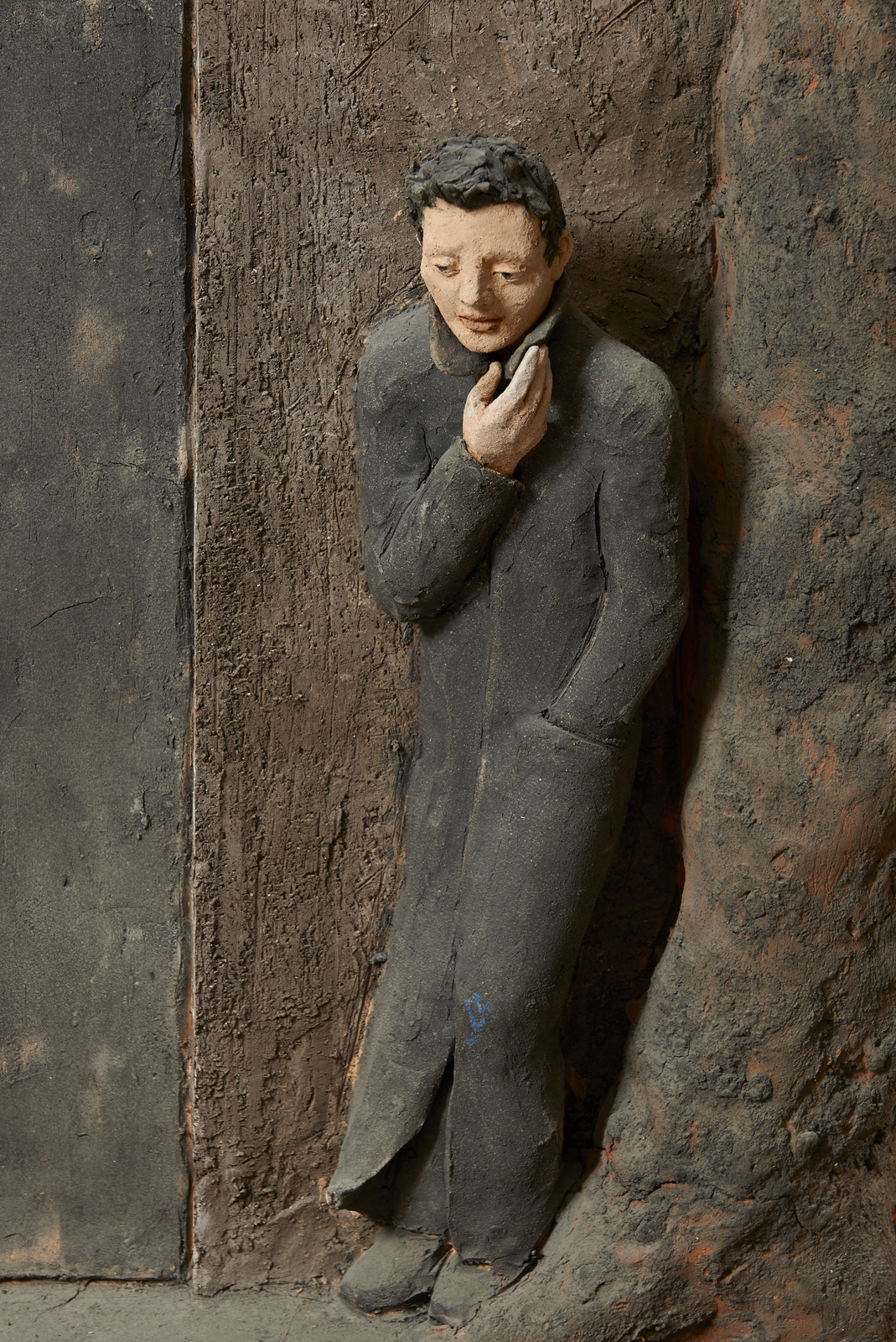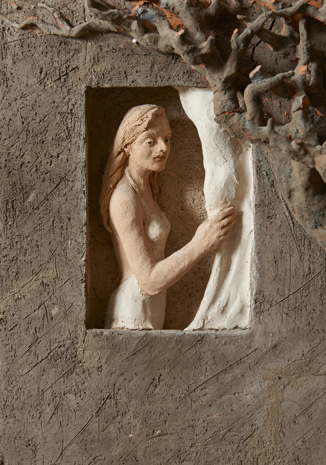 CORNINI MARCO (n. 1966) Senza titolo. Terracotta dipinta. Cm 80,00 x 114,00 x 10,00. Presenti lievi difetti.