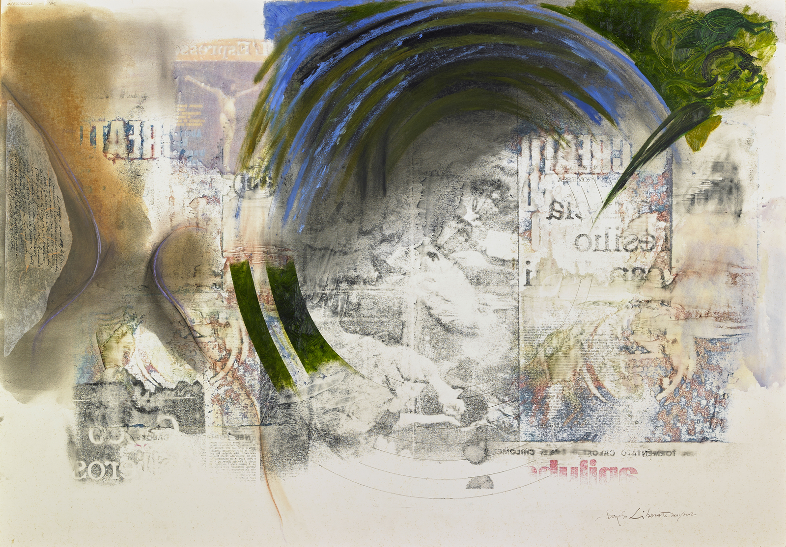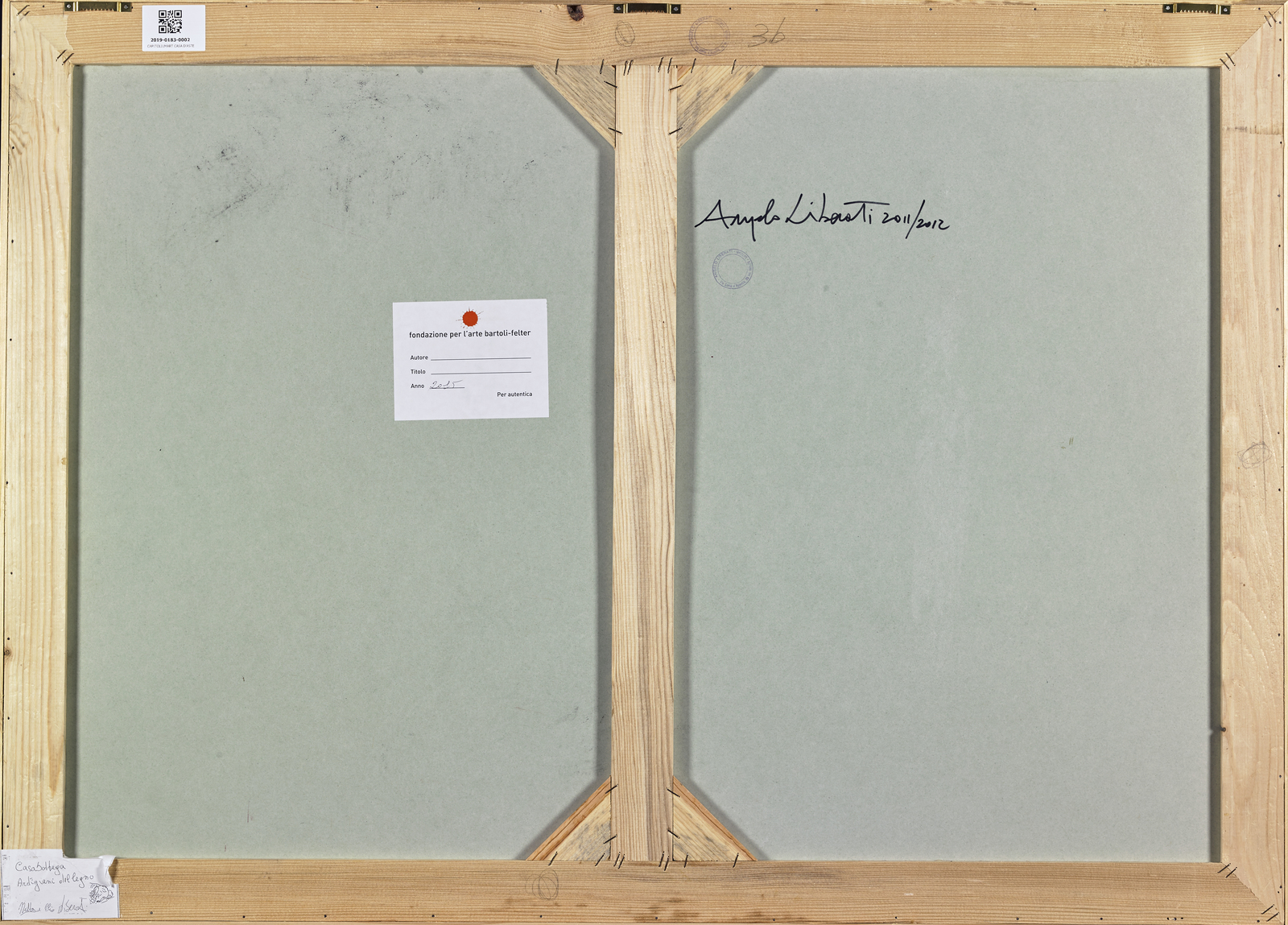 LIBERATI ANGELO (n. 1946) Senza titolo. Tecnica mista su cartone. Cm 100,00 x 70,00. Firma e anno in basso a destra. Al retro titolo, firma e timbro dell'artista. 2011/2012. Cornice presente