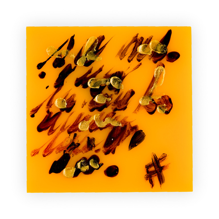 FERNANDA FEDI (1940)Cromoscrittura, 1996Tecnica mista su tavolacm 5x5Firma al...