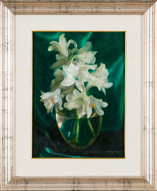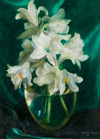 OSCAR EREDI (1901-1953)Gigli su velluto verde, 1936Olio su tavolacm...