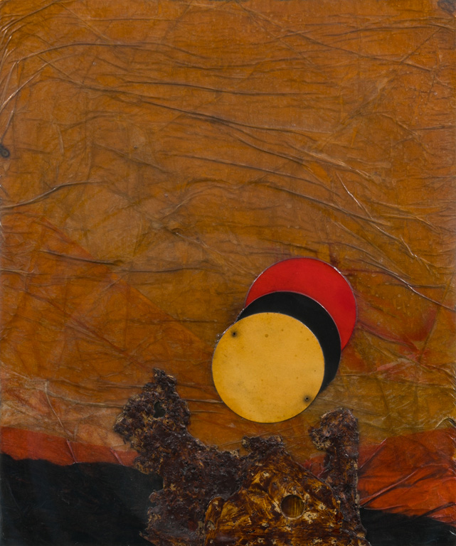 Tecnica mista, sughero e collage su tavola