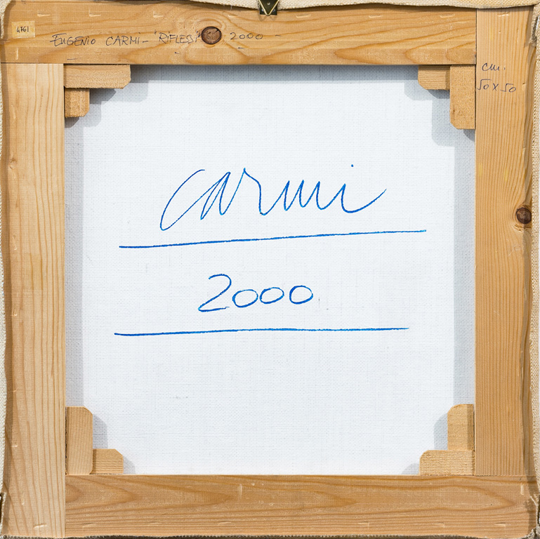 EUGENIO CARMI (1920-2016)Riflessi, 2000Olio su tela di jutacm 50x50x2Firma e...