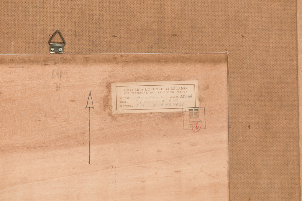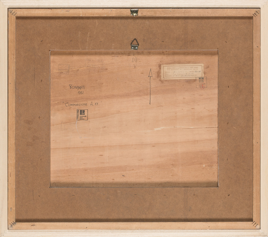 Etichetta e timbri della Galleria Lorenzelli (MI) al retro