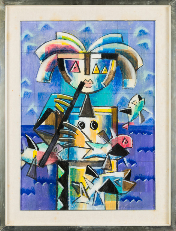 Lot 694 | IBRAHIM KODRA (1918-2006)Senza Titolo (suonatore con piffero e pesci)Tecnica...