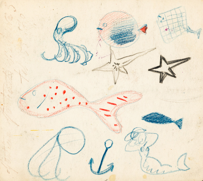 MARIO SIRONI (1885-1961)Elementi marini, metà anni '50Matite colorate, matita...