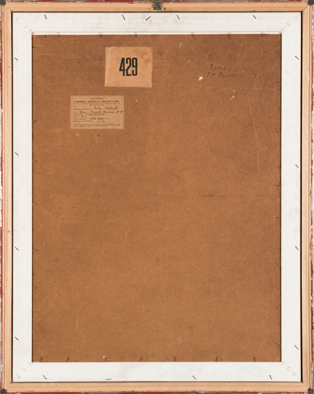 Etichetta della V Mostra di Pittura del "Maggio di Bari" al retro