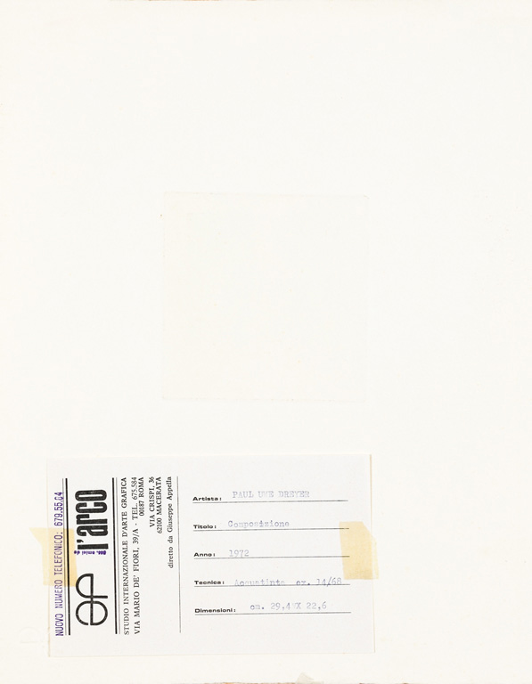 PAUL UWE DREYER (1939-2008)Composizione, 1972AcquatintaLastra cm 9x9Foglio cm...