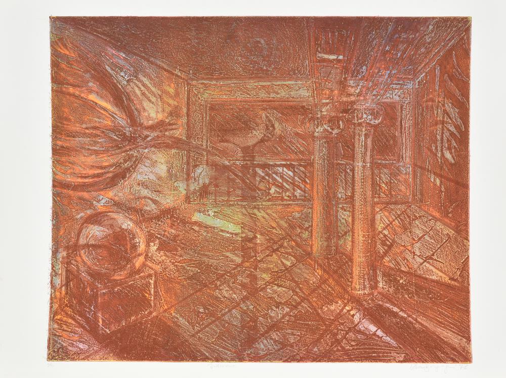 Mario Borgogni INTERIEUR litografia, cm 50x70; es. E.A. firmato, titolato, datato e numerato eseguito nel 1986